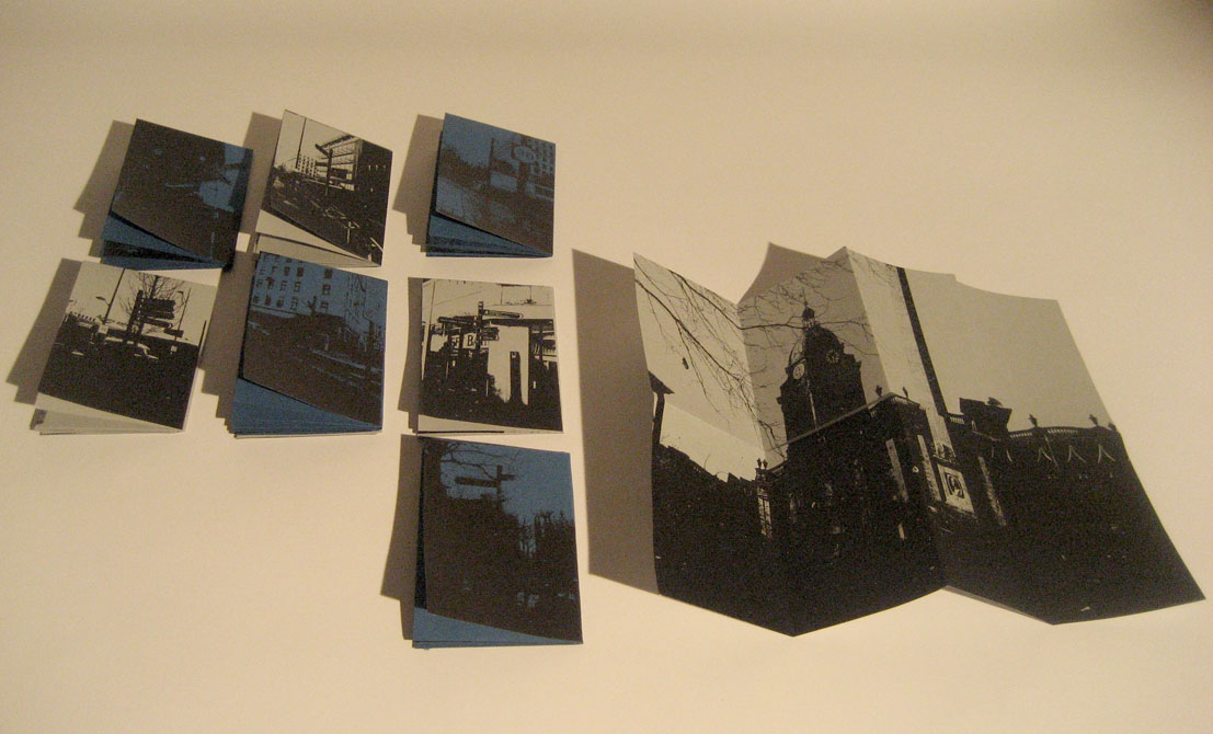 This set of 8 books conveys a walk I went on to Birmingham Cathedral. I photographed every signpost I passed along the way and in addition to this I angled my camera in the direction of each arrow on each particular signpost, expressing the space around me and these images create the content of each book. I came across 7 signposts on the way. The last book folds out to reveal a full image of Birmingham Cathedral, which was my final destination.